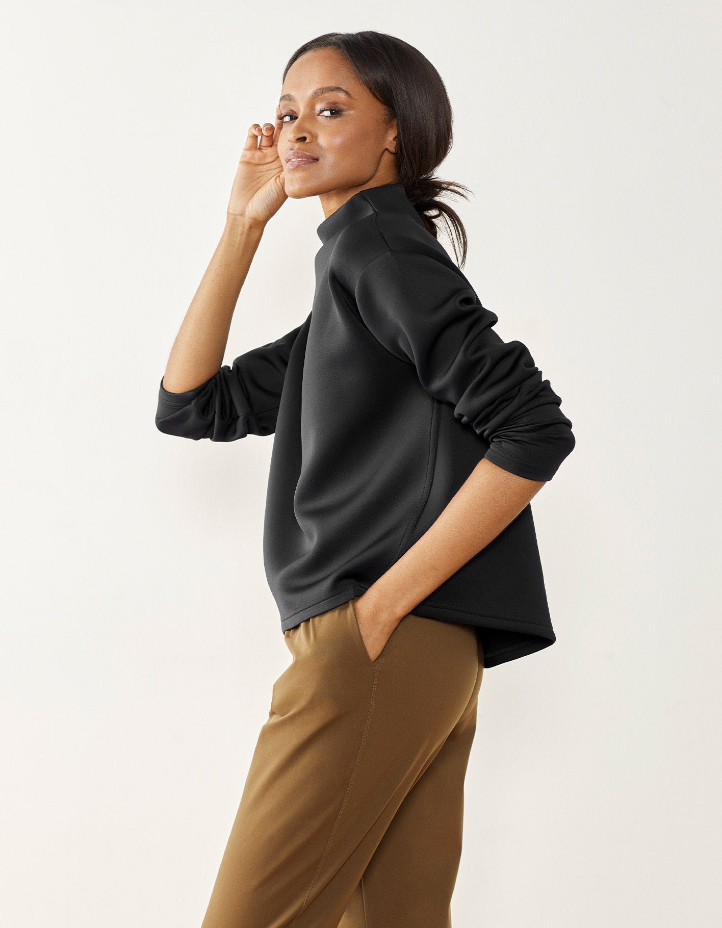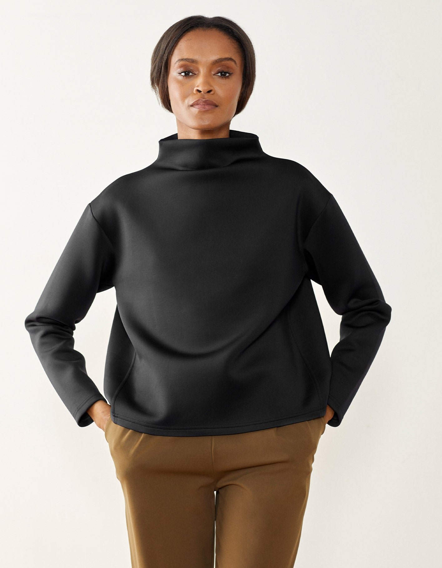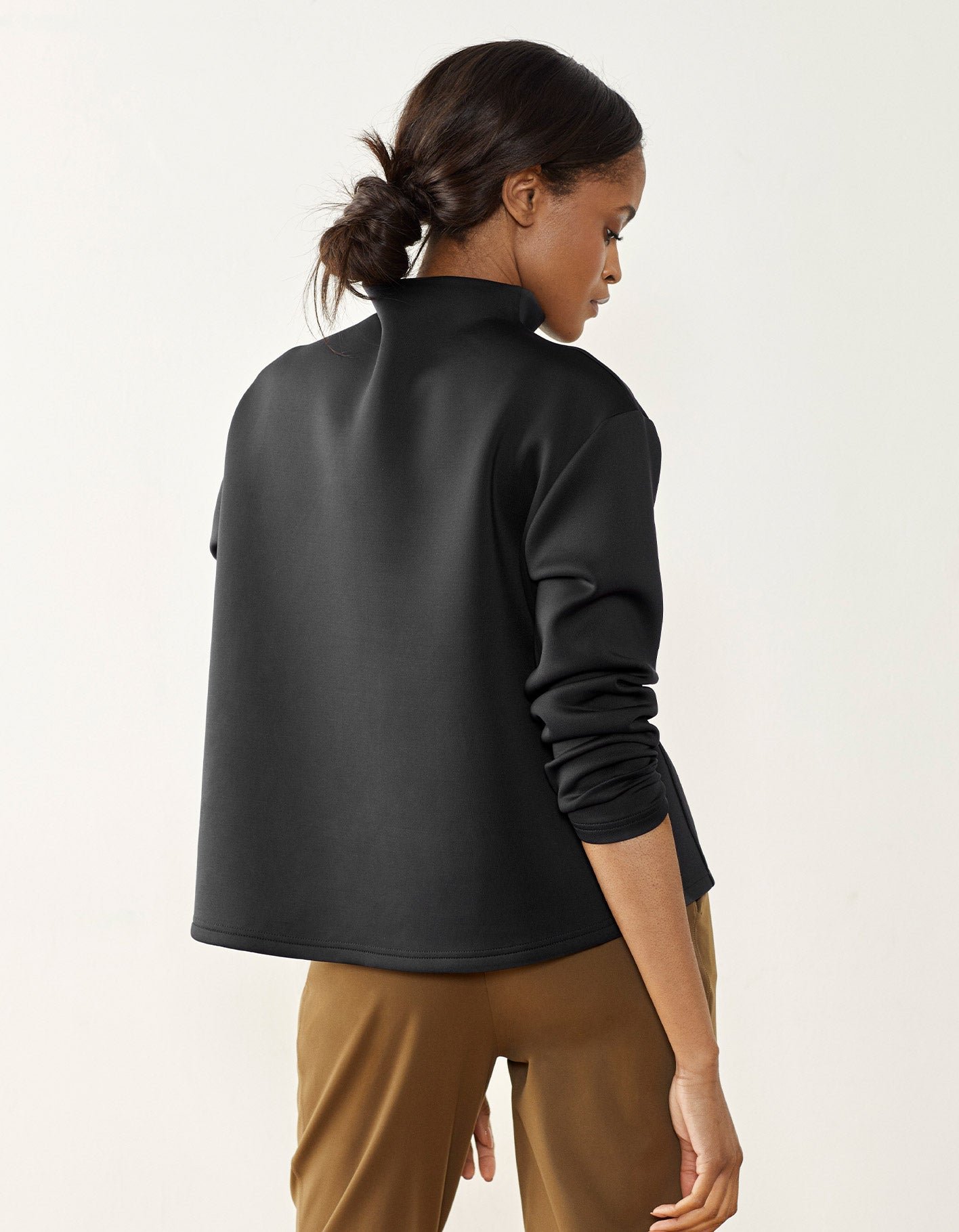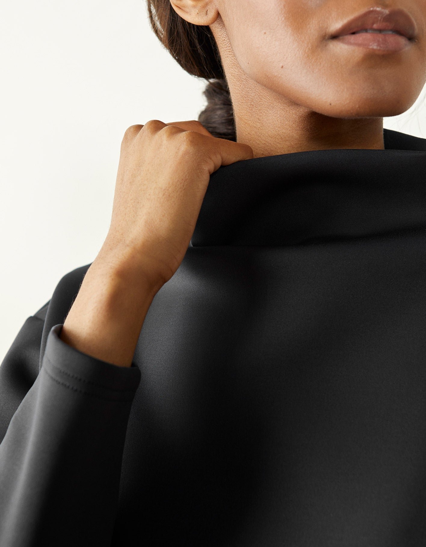 What makes Like A Boss a luxury sweatshirt? The neoprene-like fabric is made of recycled polyester and features a high neck to take you from yoga to the office. Designed for boxy fit.